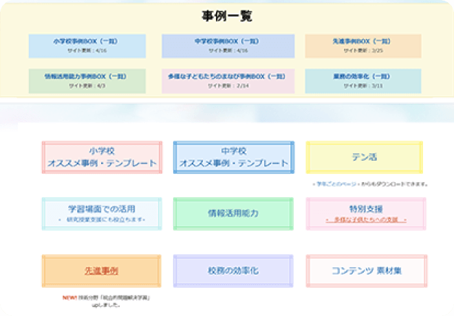 事例や指導案を蓄積した豊富なノウハウを活用し、従来の機器整備や校務支援はもちろん、「能動的な授業提案」を実施。授業へ積極的に参加し、先生のご要望を主体的に把握しながら臨機応変にご提案をいたします。先生方のお困りに合わせて指導案作成や研究授業づくりまでサポートすることで、授業づくりから授業改善まで幅広くご支援いたします。