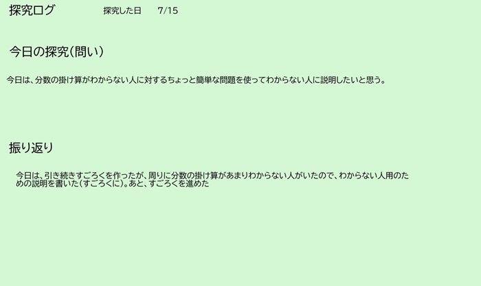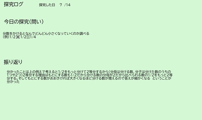 「今日はここを深めよう」と目的意識をもって学習に入ることで、前回からの継続性を意識した学びが促されます。