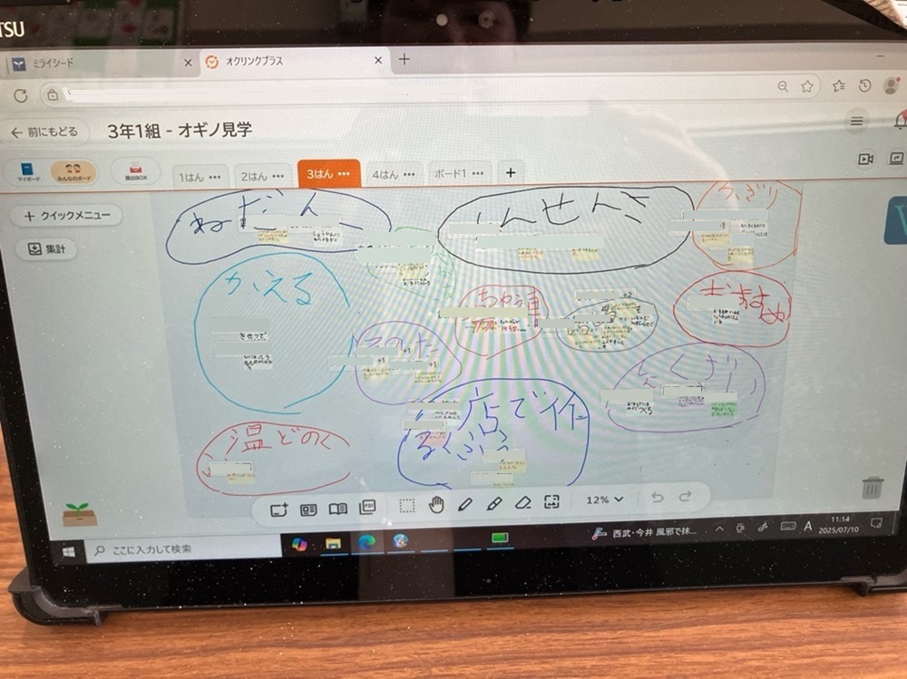 子どもたちは、先生から具体的な説明がなくても、タブレット上で本当にたくさんの感想を共有し合っています。そしてその後の「まとめ」の作業も、「オクリンクプラス」でスムーズに対応しています。カードを実際に移動し、項目別に仕分けすることができるので、頭のなかで整理するよりもわかりやすいのでしょうね。これまで付箋を使ってやっていた作業を事前準備なしでできるし、考えが変わっても繰り返し移動できる。教員にとっても、子どもたちにとっても、気軽に楽しく学習できるようになったのではと思います。