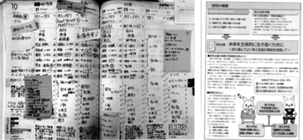 ICT云々の前に、本校の研究テーマの一つでもあった「家庭での学習習慣の確立」を実現するため、本年度は「Foresight手帳」を導入しました。これは、生徒一人ひとりが自分のスケジュールを手帳上で管理しPDCAを回していくというシンプルなものですが、子どもたちの約半数以上の学習時間が伸びたという成果を打ち出しました。