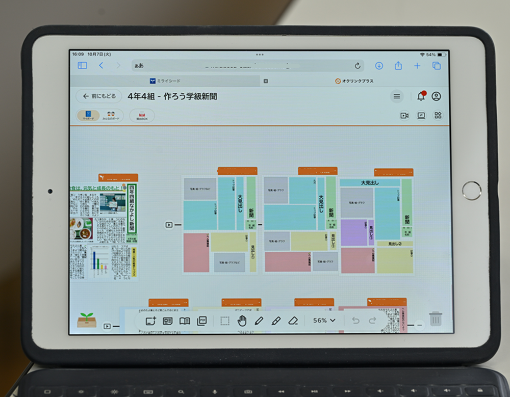 関根先生は、「iPadに元々入っているアプリだと、特に低学年には文字入力が難しい場面もあります。でも、ミライシードなら手書きでも書き込めるので、学年を問わず使いやすいです」と話します。関根先生は、その優れた操作性を実感し、現在は4年生の担任として新聞作りなどの実践に取り組んでいます。