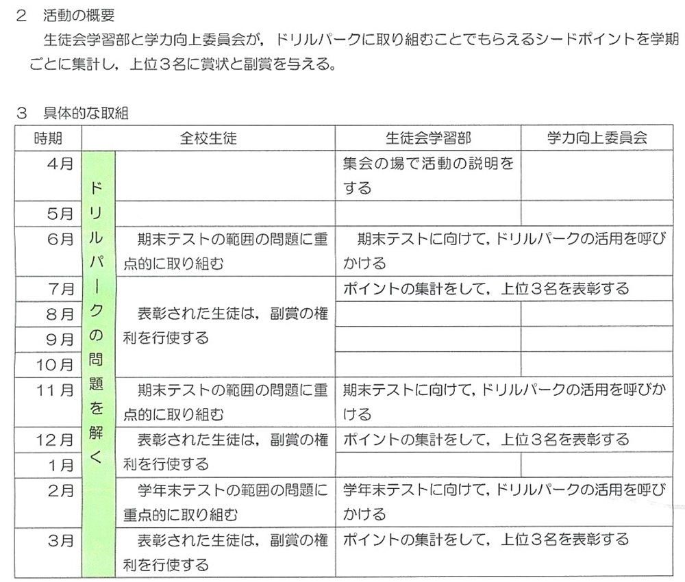 生徒主導で、先生に負担があまりかからない「ドリルパークキャンペーン」