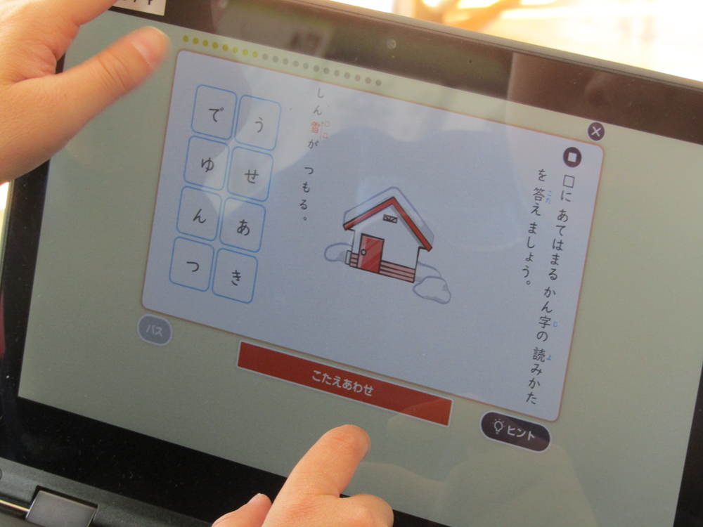 この日の授業では音とイラストで漢字の読みを学習していた児童がいた