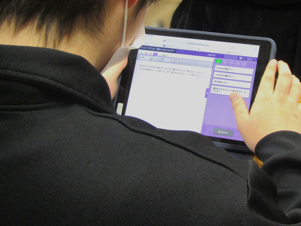 早めに課題が終わり、他の教科の学習をドリルパークを使って自主的に学習している生徒もいた