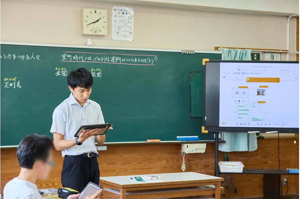 デジタル教材を導入して5年ほどになりますが、異動してこられたばかりの先生などは、最初は不慣れだと思いますので、校内での情報共有や研修参加を行っています。ミライシードは教科によって使い方が異なってくるので、使い始めの先生だと、その教科にあった使い方がわからなくて、最初の一歩が踏み出せないということもあると思います。最初はホワイトボード代わりとして使って、自分の考えを気軽に書いてみよう、出てきた意見をノートにまとめてみよう、そんなイメージで使い始めたらいいのではないでしょうか。