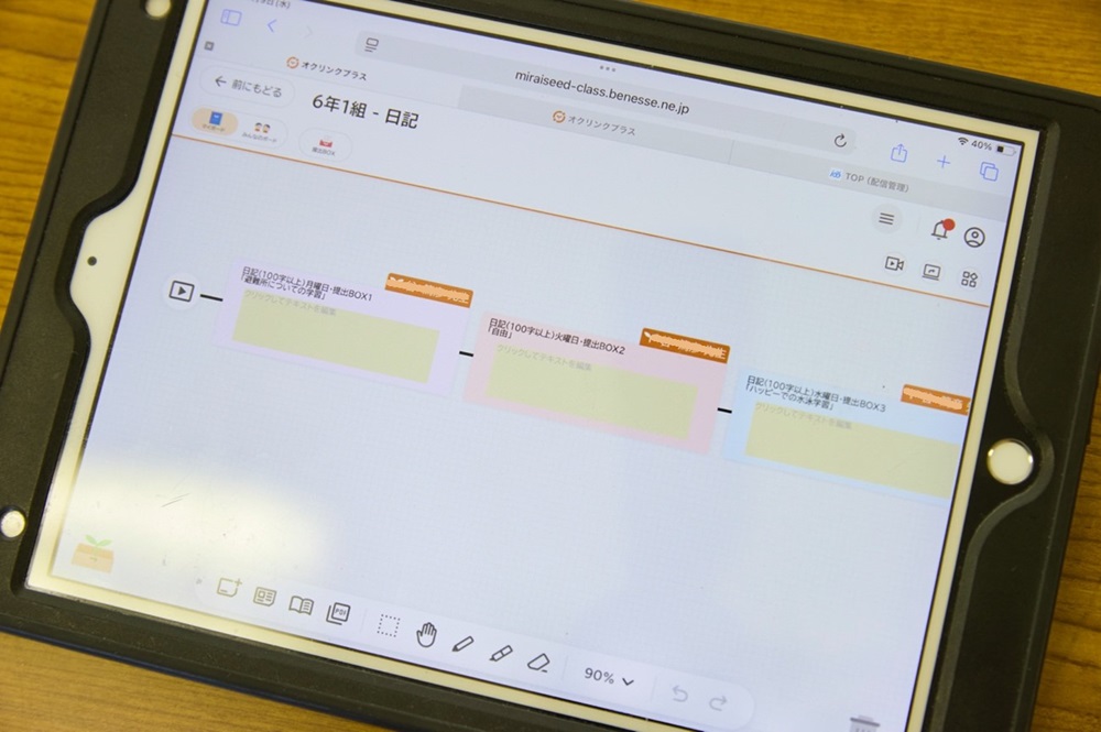 子どもたちが連絡帳を持ってきて、コメントを書いて、それを子どもの下校時間までに全員分こなす時間的な制約は大きなものでした。しかし、オクリンクプラスで一週間分のお題のカードを送っておけば、子どもたちが帰った後や登校前にパッと見ることができます。こちらのタイミングで返事ができるので、非常に楽になったと感じています。