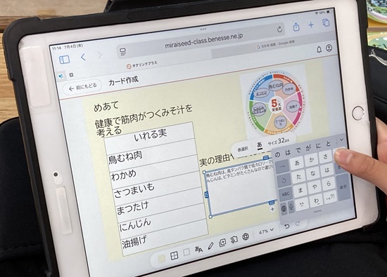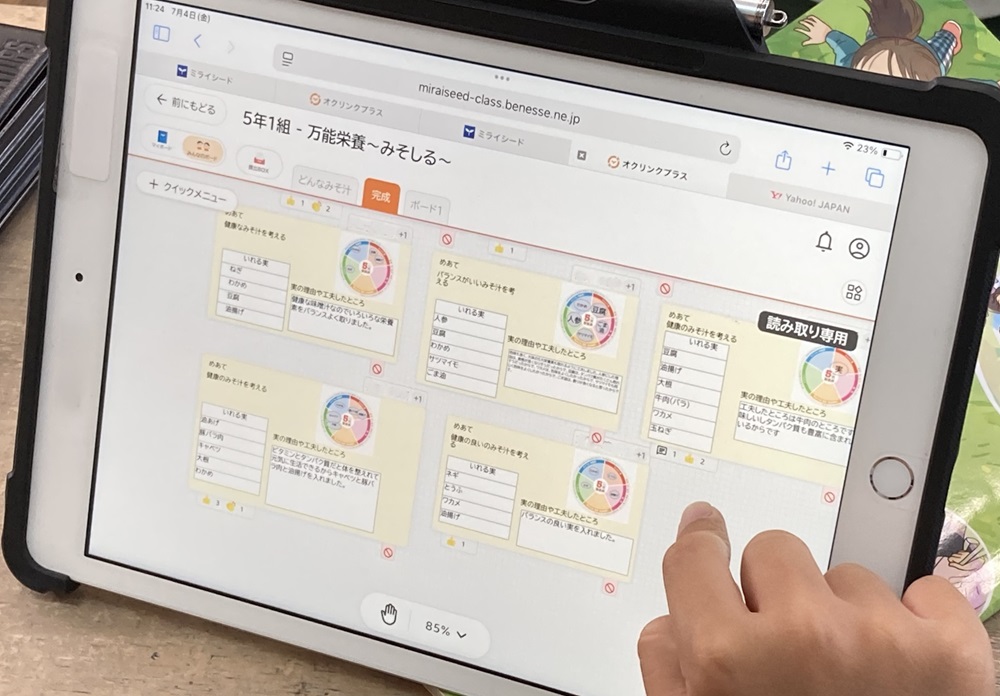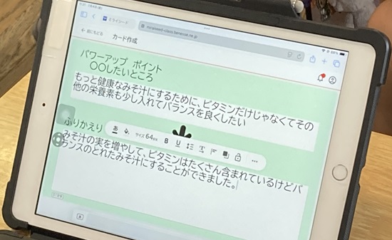 みんなのレシピ案をボード上で一覧することで気づきが増え、自分の考えをより深めることができる。