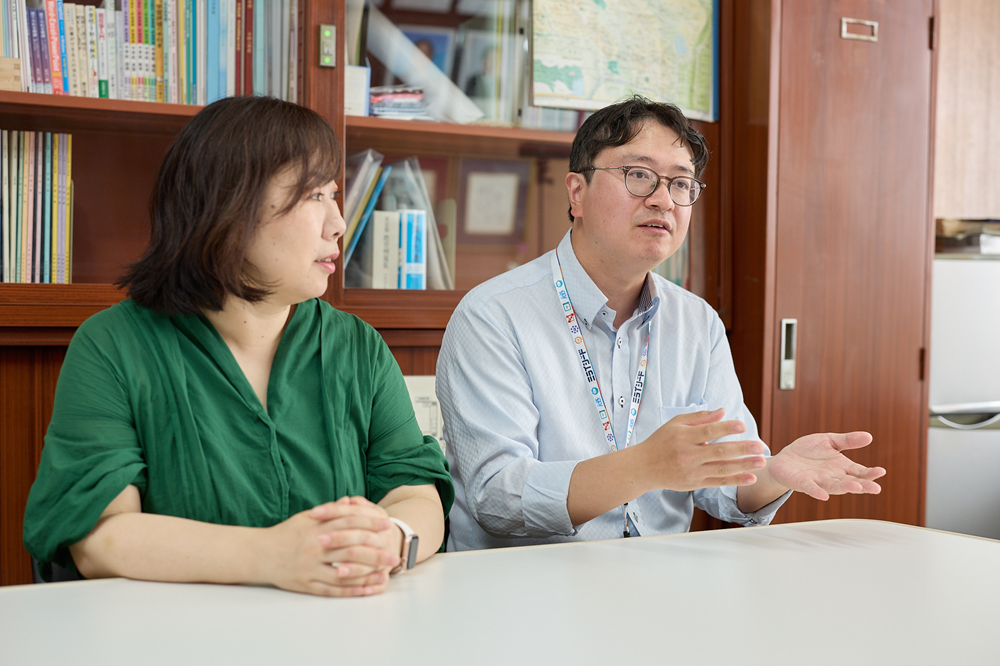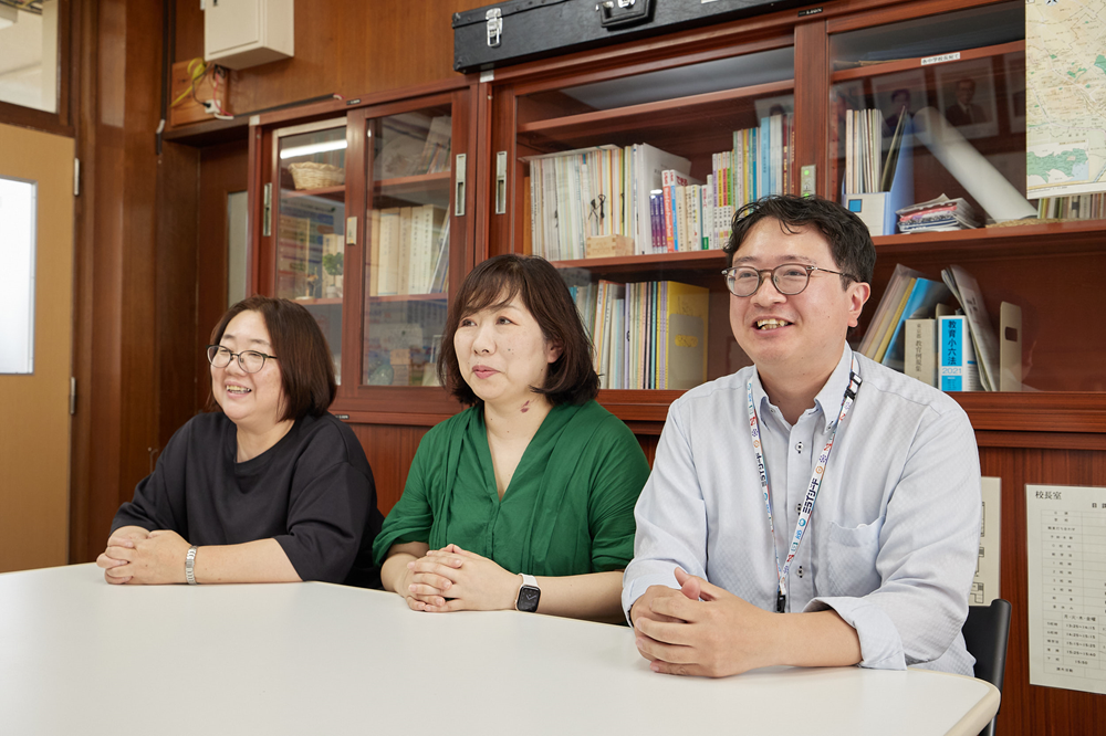 本校では、定期的に教員との1on1を実施し、対話しながら自分の想いを伝えたり、先生たちの困りごとを相談したり、学校としての方針について考えをすり合わせたりする機会を多く設けるようにしています。そして、教員と同じように、ICT支援員の神山さんとも積極的にコミュニケーションをとり、ICTの効果的な活用について意見交換をしています。神山さんは、定期的に共有される学校経営方針に沿いながら、教員一人ひとりが描く授業づくりを実現するためにいつも全力でサポートしてくださっています。