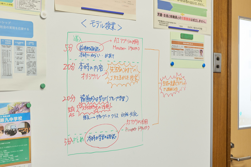 - 東京都文京区立第九中学校 | 窪宏孝校長先生、森川先生、石川先生、鈴木先生、ICT支援員の神山さん