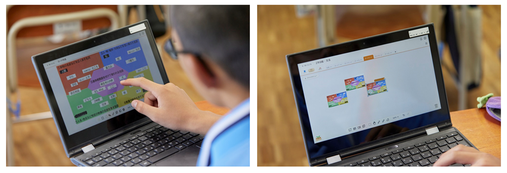 もうひとつは、誰にでもできる、という点です。紙に言葉でまとめることが苦手な子もいるので、同じ作業を紙でやったら、きっと手がとまってしまう子もいます。でも、ICT上であれば、他者を参照して何かしら考えて手を動かすことができます。 もし間違っていたとしても、それをきっかけにして「どうしてそう考えたのか」「どうしたら正しくなるのか」という対話につなげていけます。誰にでもできるから、誰でも授業の活動に参加できる。ICTはそういうツールになっていると思います。