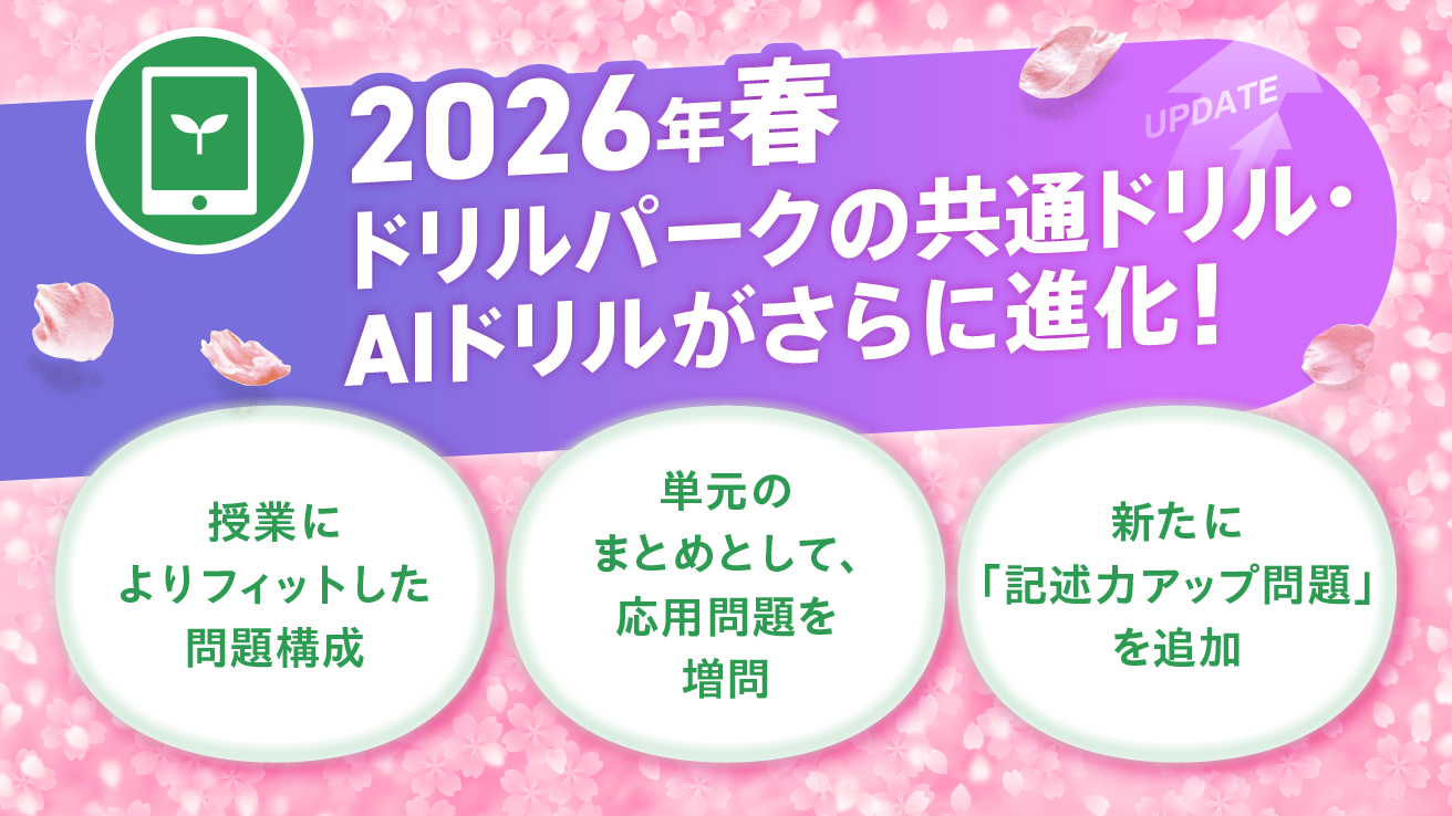 【2026年3月中旬予定】2026年春、ドリルパークの共通ドリル・AIドリルがさらに進化!
