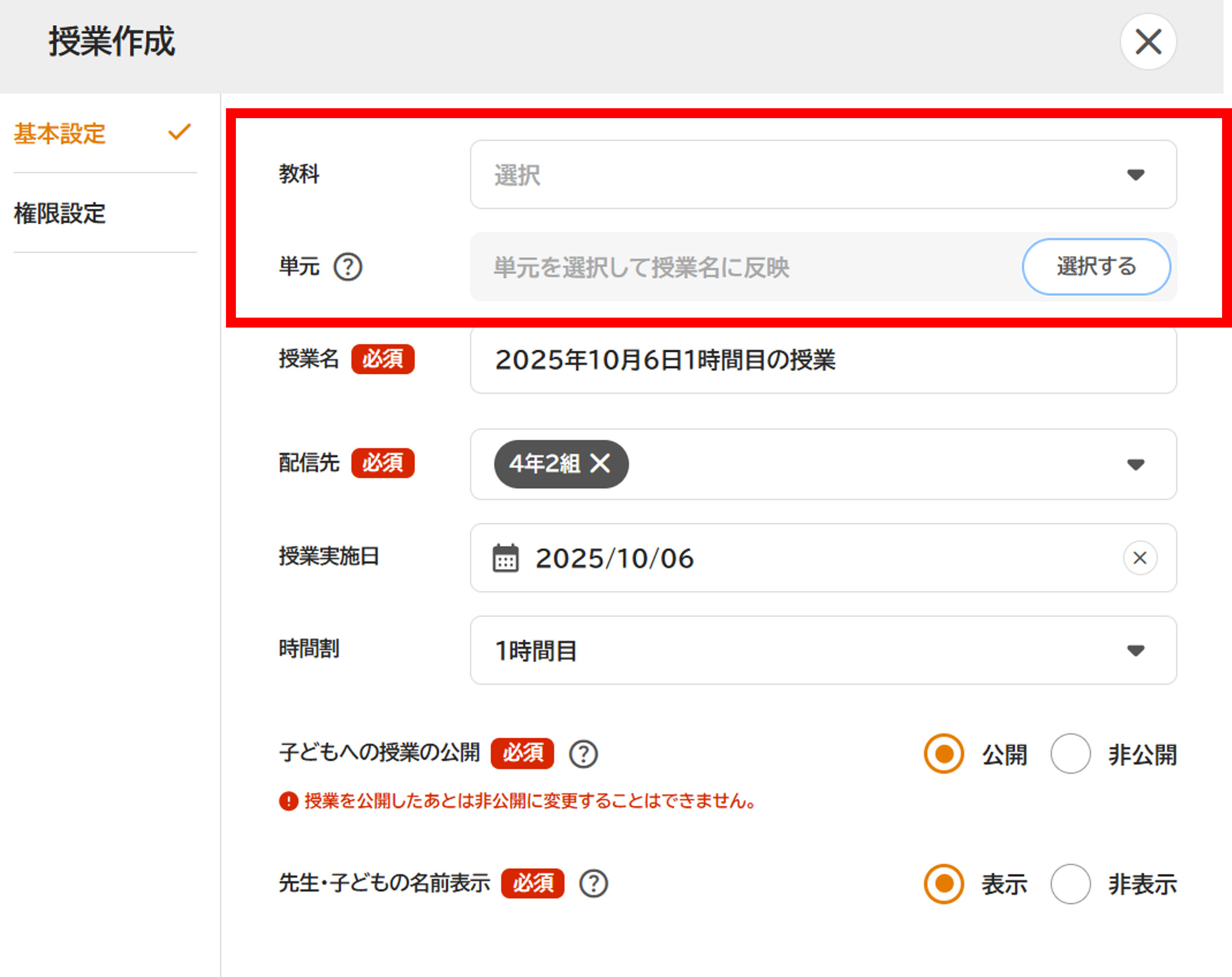 授業作成時、またはマイボード・みんなのボード右上メニュー内の「授業設定」などから設定できます。