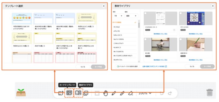 オクリンクプラスには50種類以上のカードテンプレート、種類豊富なデジタル教材・プリント教材を搭載しており、すぐに取り出して授業で活用いただけます。