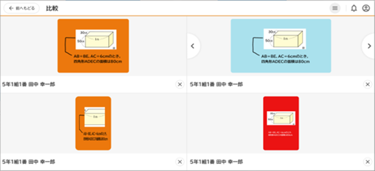 子どもに提出BOXへカードを送るよう提示するだけで、パッと子どものカードを一覧で可視化・比較ができます!