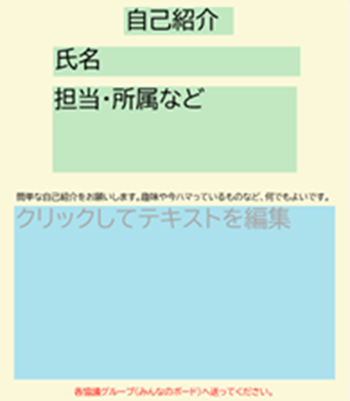 ①研究討議の前に自己紹介カードを記入。各協議グループの「みんなのボード」に送る。