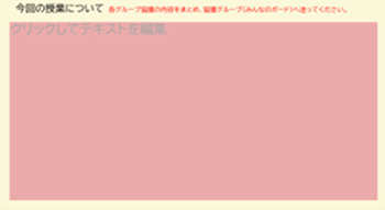 ②グループごとに研究討議をする際、「今回の授業について」カードを各協議グループの「みんなのボード」に送り、話し合いの内容を記載する。