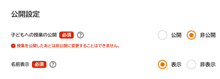 ②授業作成内の基本設定より、「公開設定」から「子どもへの授業の公開」を「非公開」にチェック。