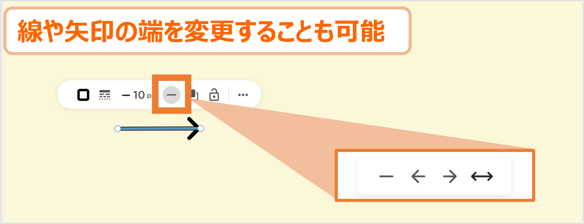 ・矢印の先端を動かすだけで、矢印の方向転換が簡単にできる