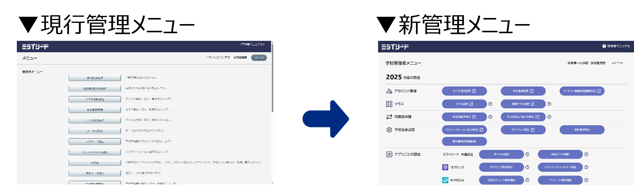 管理メニューが、目的の作業をより探しやすく・操作しやすい画面に変わります。