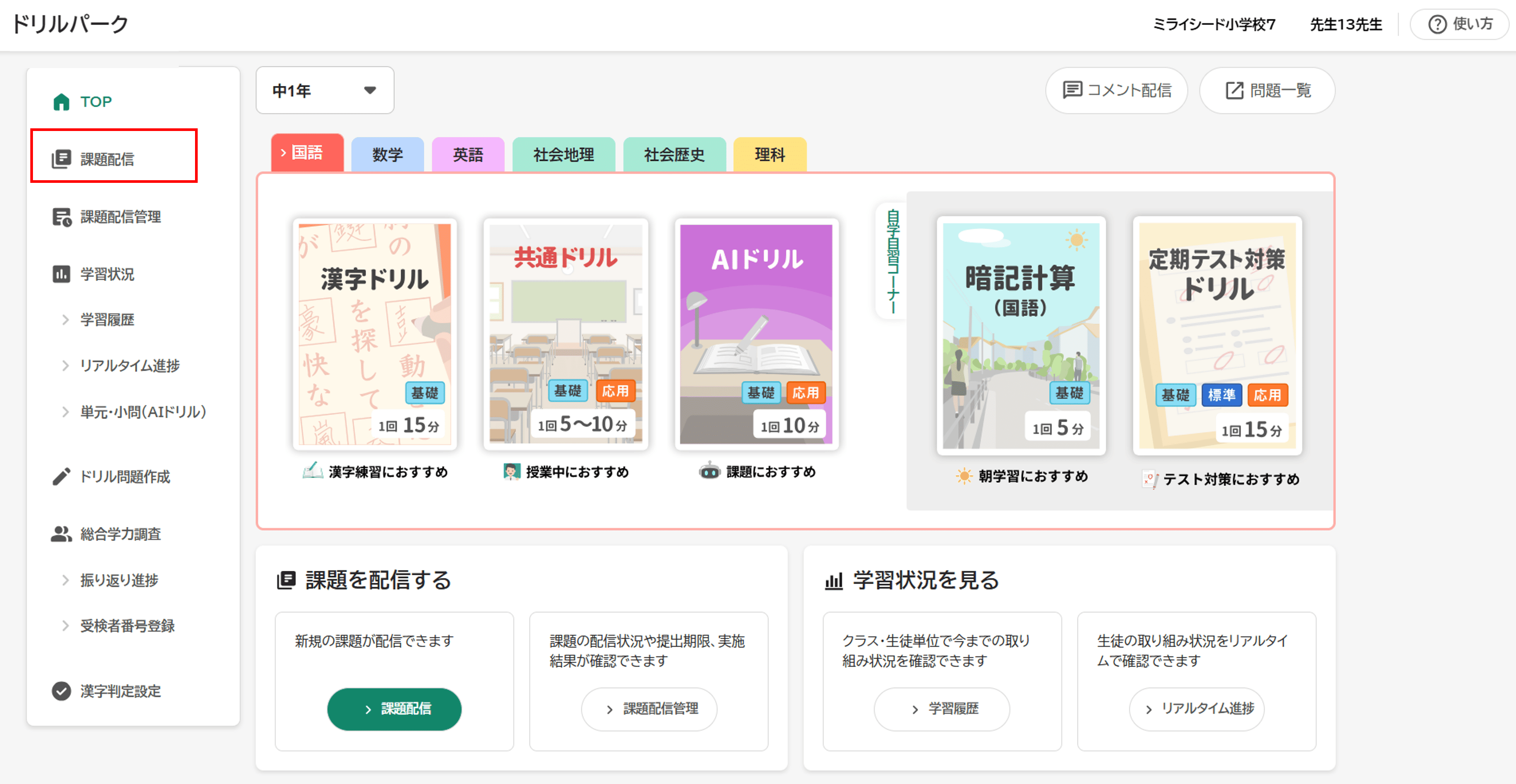 ※「個別最適な課題 配信ガイド」が表示されるようになりました。詳しくはこちらをご確認ください。