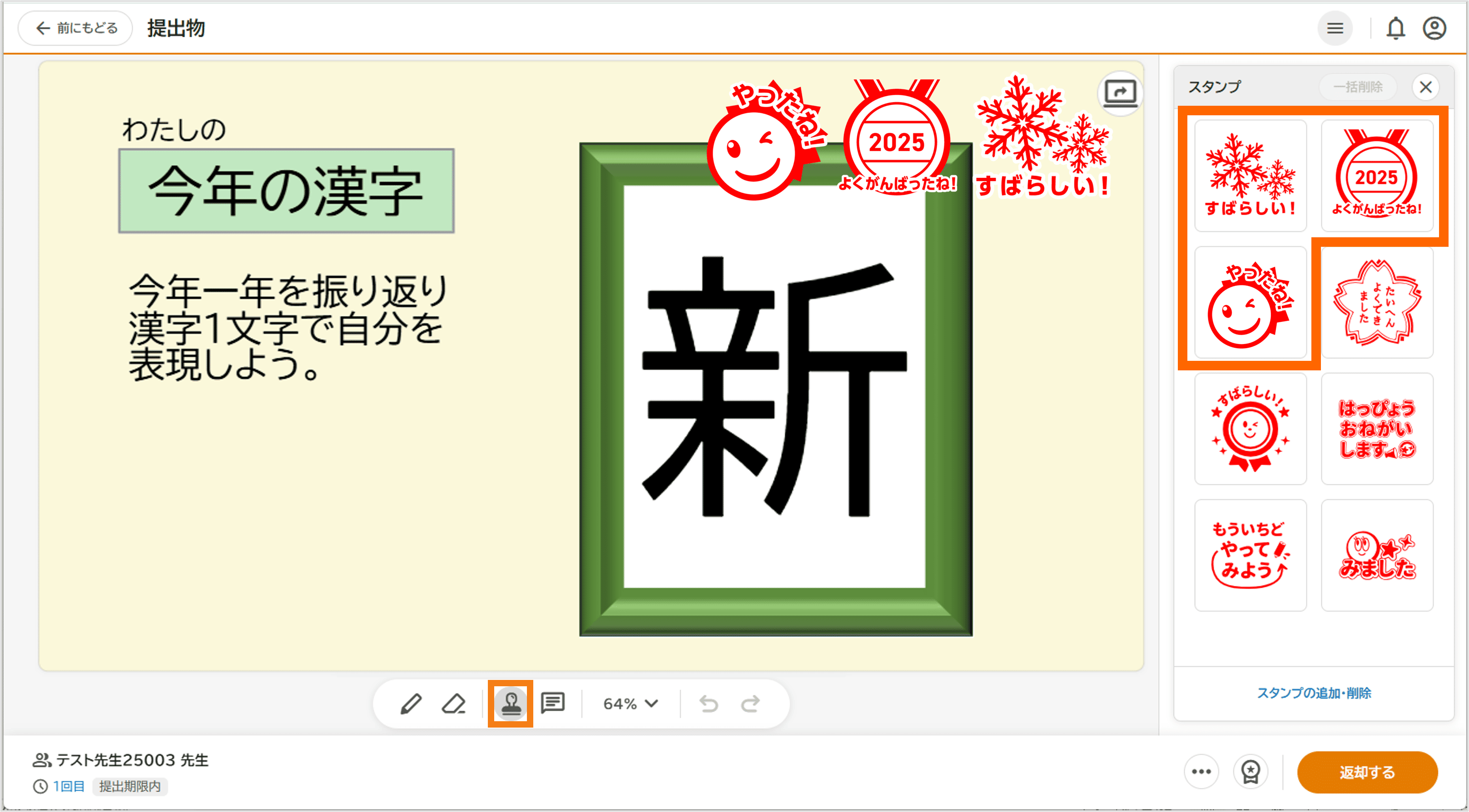 また、同じく12月上旬~1月中旬(予定)の期間限定で、提出BOXに冬や学期末にぴったりの「フィードバックスタンプ」を3種類追加いたします。子どもたちが喜び、やる気がアップするようなデザインですので、こちらもぜひご活用ください。