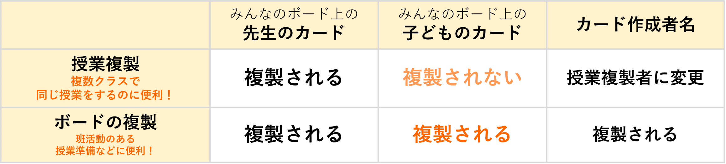 ▼「授業複製」と「ボードの複製」の違い