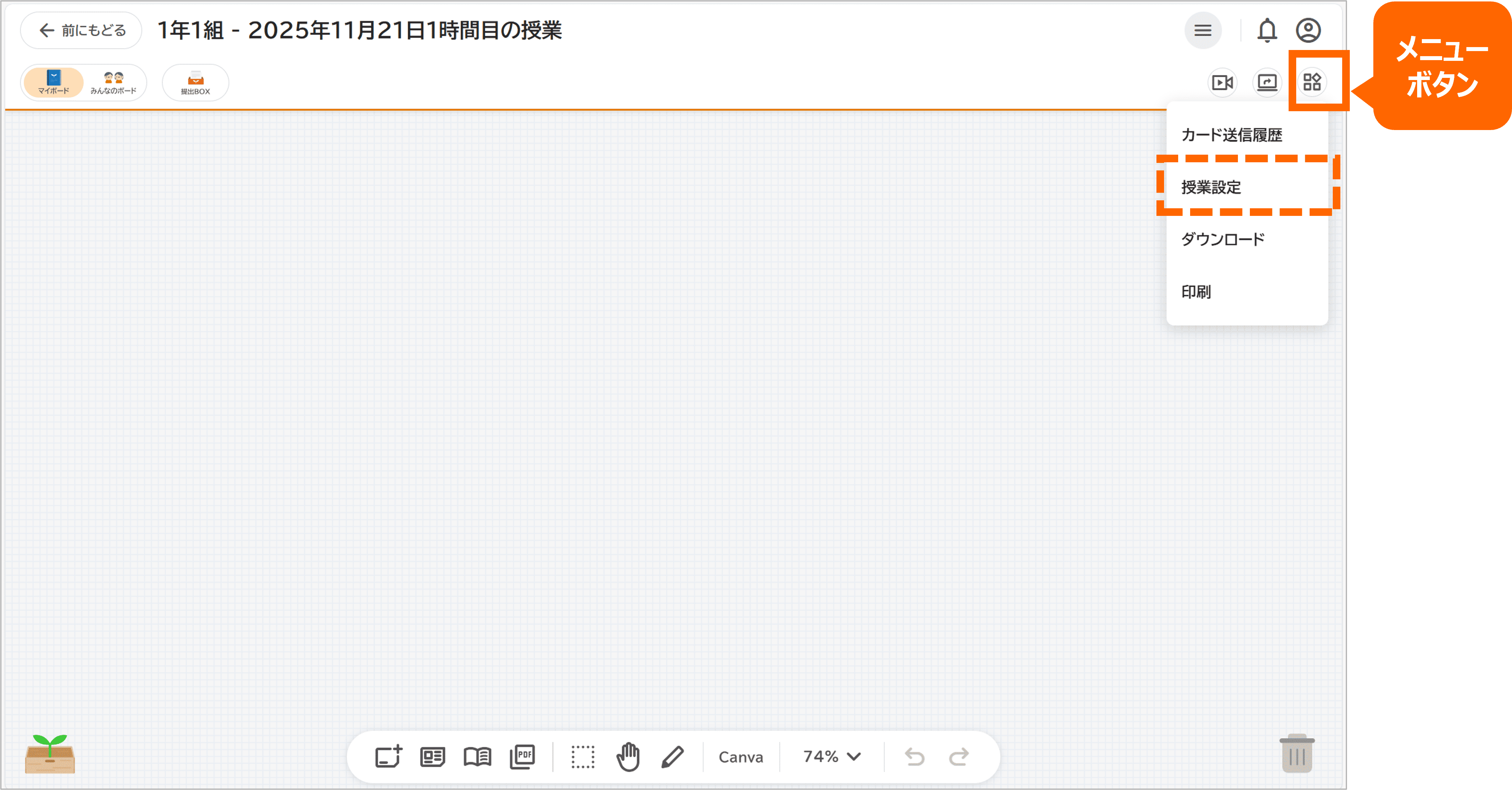 また、ボード上の授業設定画面 からも同様に設定することが可能です。