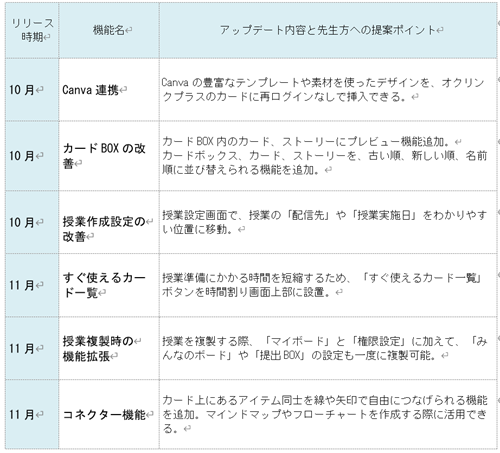 先生方の授業準備と操作を効率化するためのアップデートが多数実施されました。