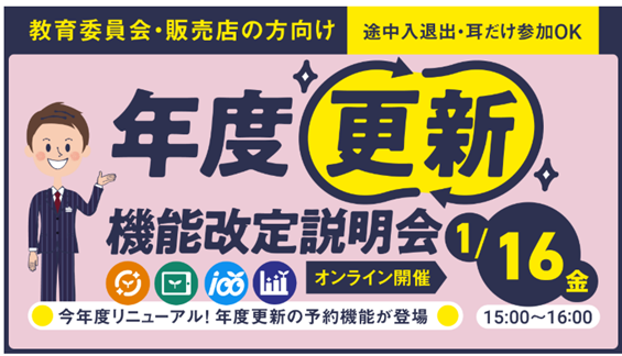 2026年1月16日(金)に、教育委員会・販売店の方向けの年度更新・機能改訂についてお知らせするWebセミナーを開催いたします。