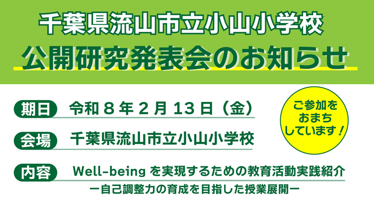 流山市立小山小学校にて行われます公開研究発表会についてご紹介させていただきます。