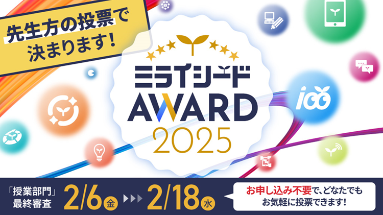 ミライシードAWARD2025のエントリーは1/6に締め切りました。全国の先生方より多数の応募をいただき、誠にありがとうございました!