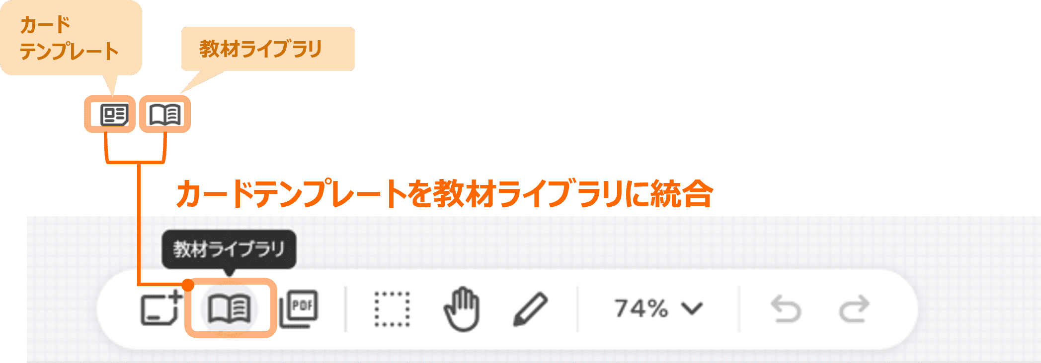 これまでボード上にあった「カードテンプレート」を「教材ライブラリ」に統合しました。これによって、教材を探したいときに教材ライブラリを開けば、カードテンプレートを含むすべての教材を探せるようになります。
