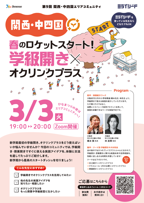 【内容】新学期最初の学級開き、オクリンクプラスをどう使えばいいか悩んでいませんか?今回のコミュニティでは、学級開き・授業開きですぐに使える実践アイデアを、体験と交流を通してたっぷりご紹介します。新学期から最高のスタートダッシュを切りましょう!
