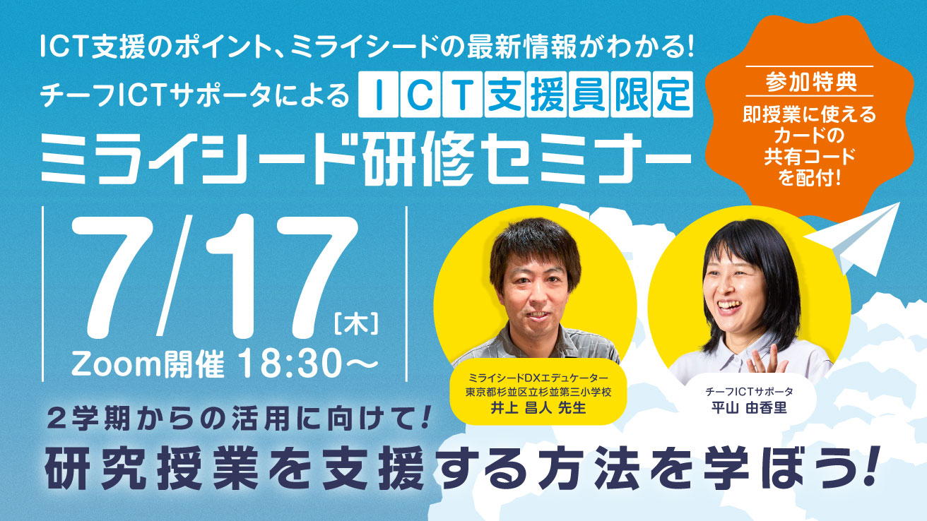 7月度「ICT支援員限定 ミライシード研修セミナー」開催のお知らせ