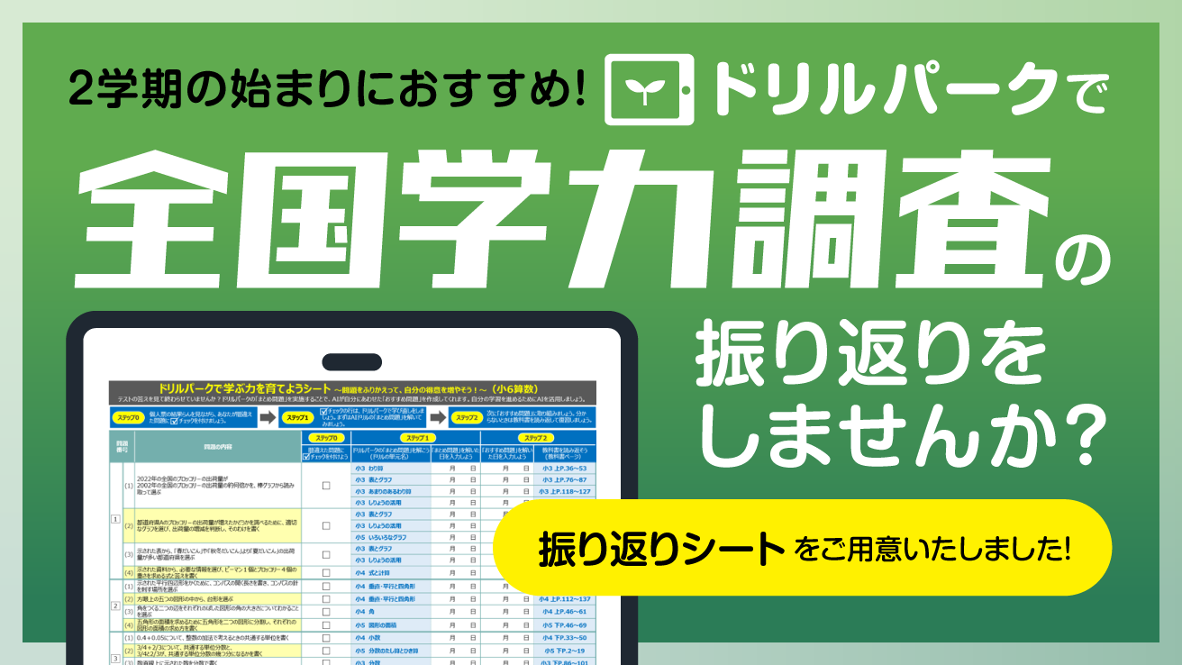 2学期の始まりにおすすめ!ドリルパークで全国学力調査の振り返りをしませんか?
