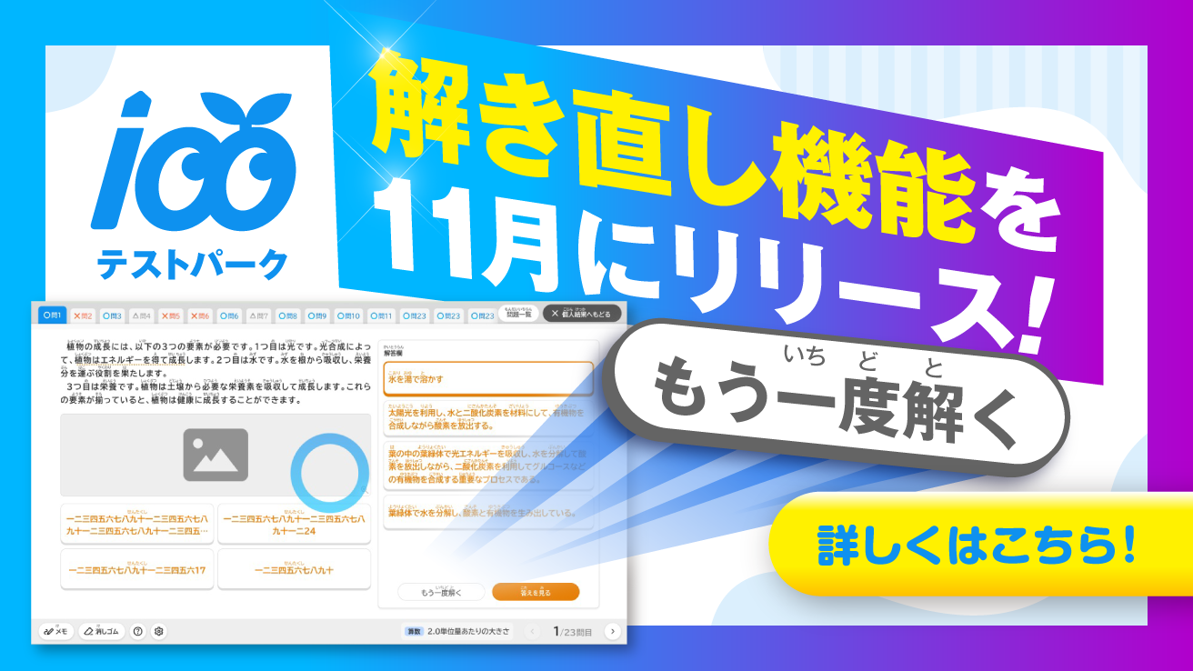 【11/5更新】テストパーク 返却済みテストの「解き直し機能」をリリース