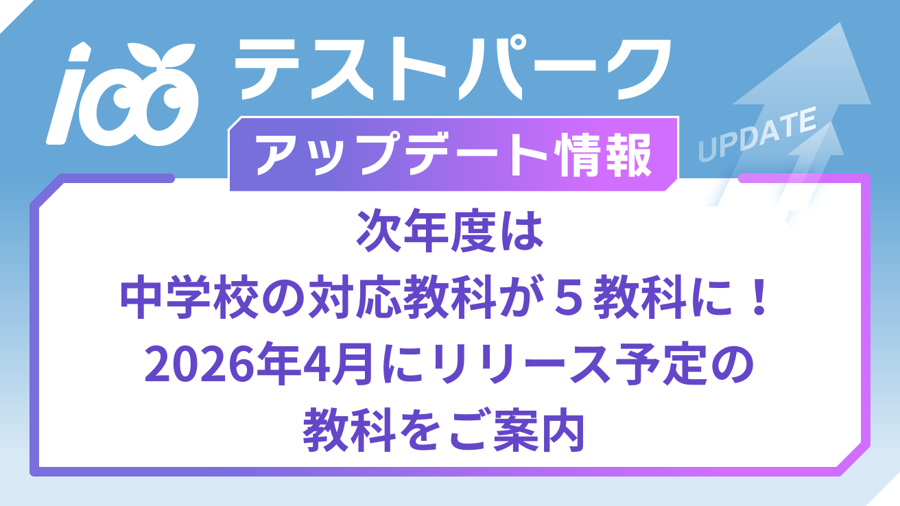 テストパーク 次年度は中学校の対応教科が5教科に!2026年4月にリリース予定の教科をご案内