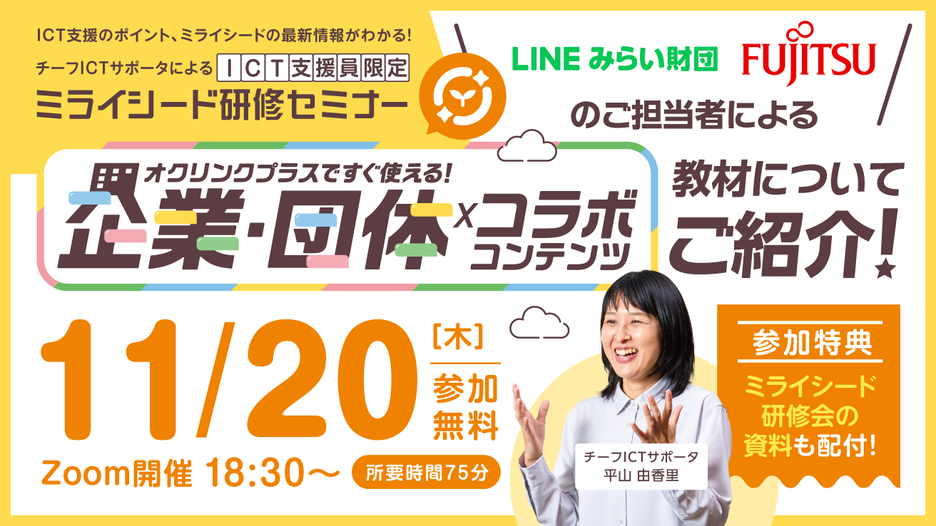 11月度「ICT支援員限定 ミライシード研修セミナー」開催のお知らせ