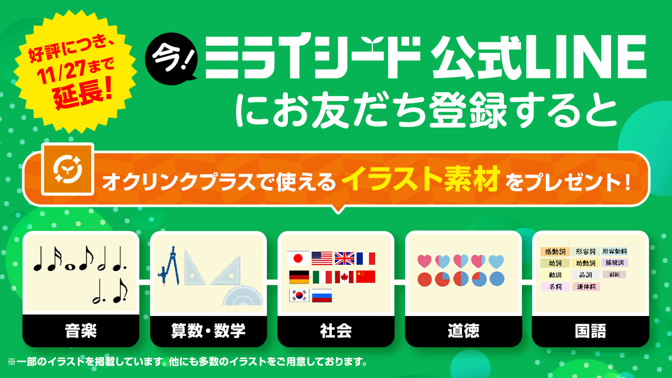 好評につき、11/27まで延長決定!ミライシード公式LINEお友だち登録キャンペーン実施中!