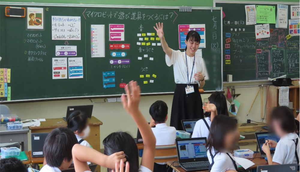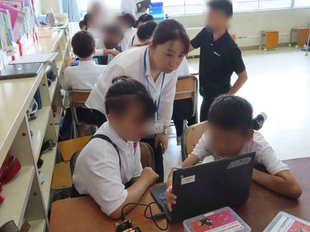 デジタル科が始まって、子どもを褒める機会が増えました。デジタル科は国語、算数などの教科の時間とはまったく異なる子どもが輝く時間でもあります。普段の授業ではあまり積極的に参加できない子が前のめりで授業に臨んでいたり試行錯誤をくり返したりしていて、時にはのめり込みすぎるのを制して話を聞くように促すことさえあります。今までの授業では引き出せなかった子どもたちのよさや学びへの主体的な気持ちを引き出せています。子どもたち同士が自然と助け合ったり認め合ったりしているのは、本当に嬉しいことです。