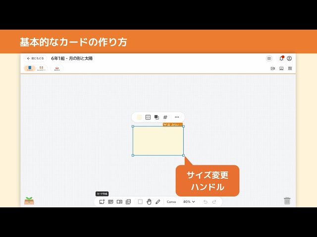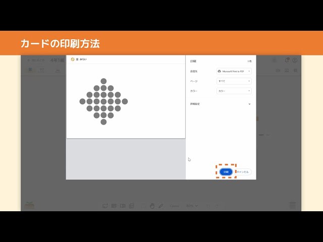 - 教材ライブラリから、デジタルやプリント教材を配置したカードを作成する方法を説明しています。