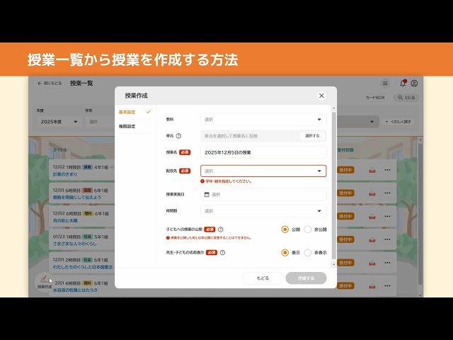 授業一覧から授業を作成する方法