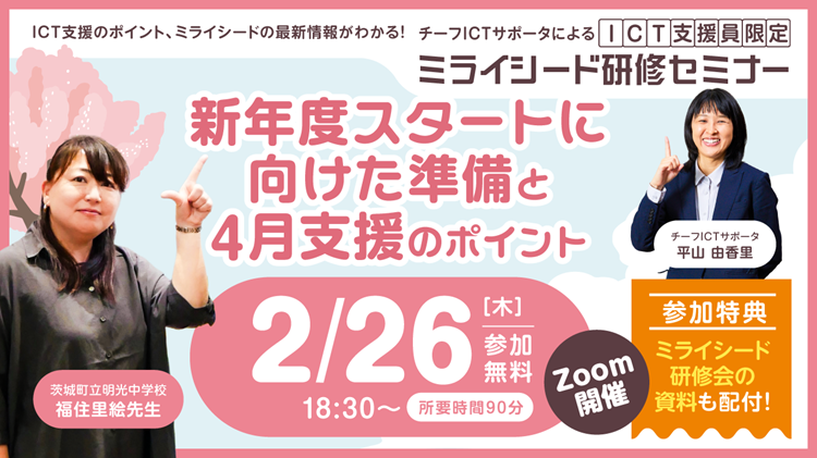 4月からのスムーズなICT活用を見据え、新年度からすぐに使える「オクリンクプラス」の活用方法や支援ポイントをテーマに特別講演を企画しています。