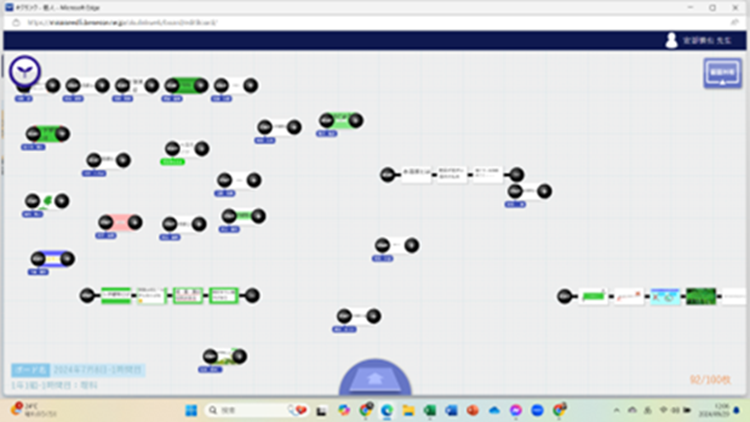 授業の最初5分は「ドリルパーク」で前時までの復習、最後5分は本時で習ったことの復習を行います。復習であればどこを解いてもOK、理解度や進み具合に応じて取り組む問題を生徒自ら選択します。週ごとに取り組む教科が決められている毎朝10分間の朝学習の時間に、タブレットを使って「ドリルパーク」を解いてもOKです。