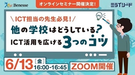 このたび、校内のICT活用推進をテーマとするオンラインセミナーを開催いたします。「ICT担当として、何から始めるとよいかわからない」「なかなか校内推進がうまくいかない」というお悩みをお持ちの先生方にぴったりの内容になっております。