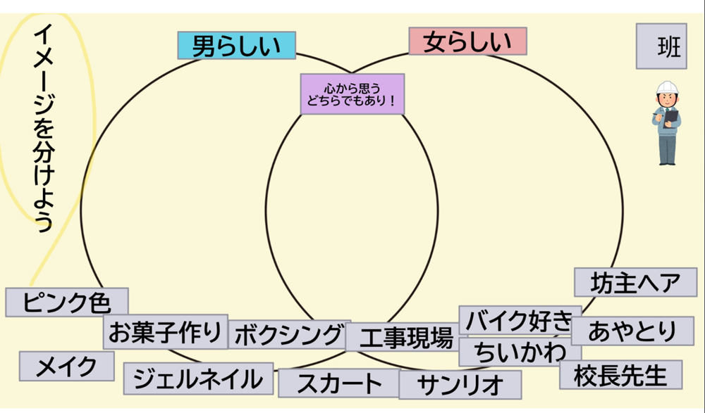 児童が考える「男らしい/女らしい」イメージを分類し、ICT上で可視化。