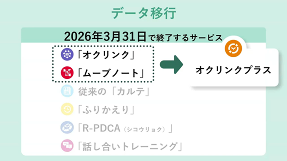 オクリンク・ムーブノートはオクリンクプラスへデータ移行が可能で、移行マニュアルも公開されています。