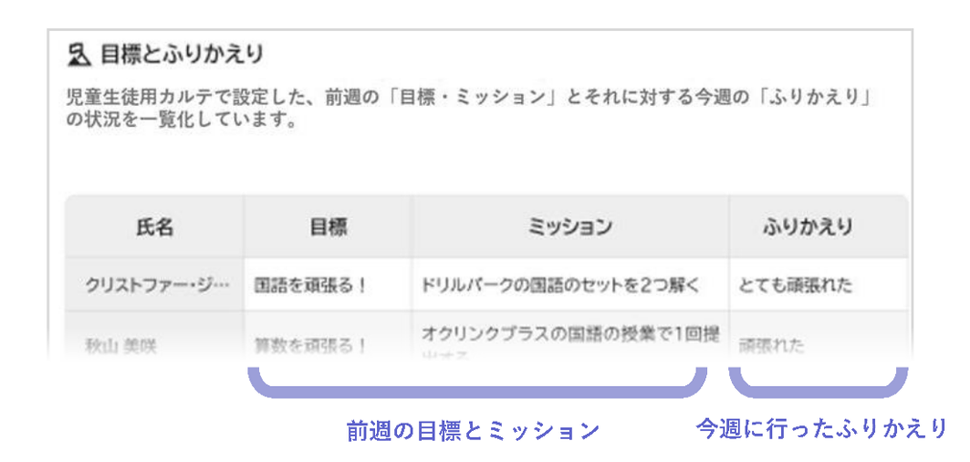 子ども用カルテで、1週間の学習の目標やミッションを決定します。