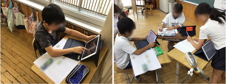 毎時間、家庭学習で自力で取り組む「自力学習」と、学校の授業内に先生や友だちと行う「みんな学習」を繰り返しながら学習を進める。