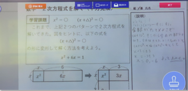 早く解答できた生徒は、ほかの生徒のヒントになるように解き方の解説を作成して「提出BOX」上で共有する。